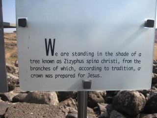 This green tree in the midst of ruins had a not so good surprise. Small thorns covered the branches which one did not see until touching a branch and being pricked. In Chorizim, this genus of the buckthorn family is spina christi. Many think that it was the branches from this tree that were used to make the crown of thorns that Jesus wore to his death.