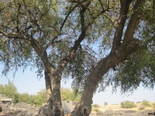 The city was stark that hot September day when my brother and I explored the ruins. The rocks used to build the city were black basalt, and most of the plants had dried to the beige and brown of late summer. Among the few green plants growing was a tree, zizyphus spina christi. An evergreen, it has edible fruits which taste much like dates. In fact, from other trees of the genus, the small red fruit is used to make the candy, jujubes.