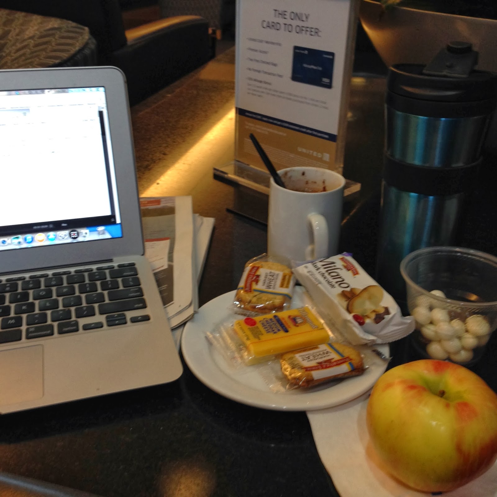 On my way for Jonas’ #1, I’m over half way through a seven hour layover at the Denver airport. Thankfully thankfully thankfully I had a pass for the United Lounge with comfortable chairs and free snacks and wifi.
