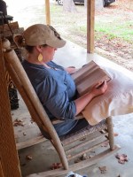 Napping, reading, sitting, bike riding, walking, knitting, drawing, doing a crossroad puzzle, outside and inside.