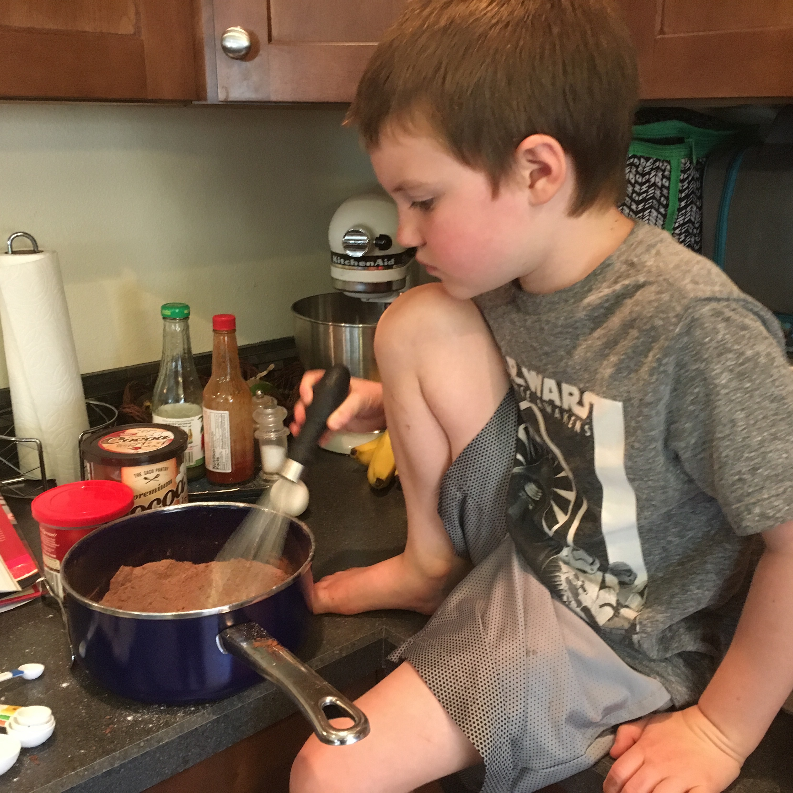 On Monday, on a perfect Oregon summer day in Bend, I spent the morning in my son’s backyard watching a 96% eclipse. It was glorious!  The bonus was that it was my son’s birthday, and for the first time in I can’t remember how many years I got to be with my son to celebrate his birthday. This included getting to bake his favorite chocolate pie with my grandsons.