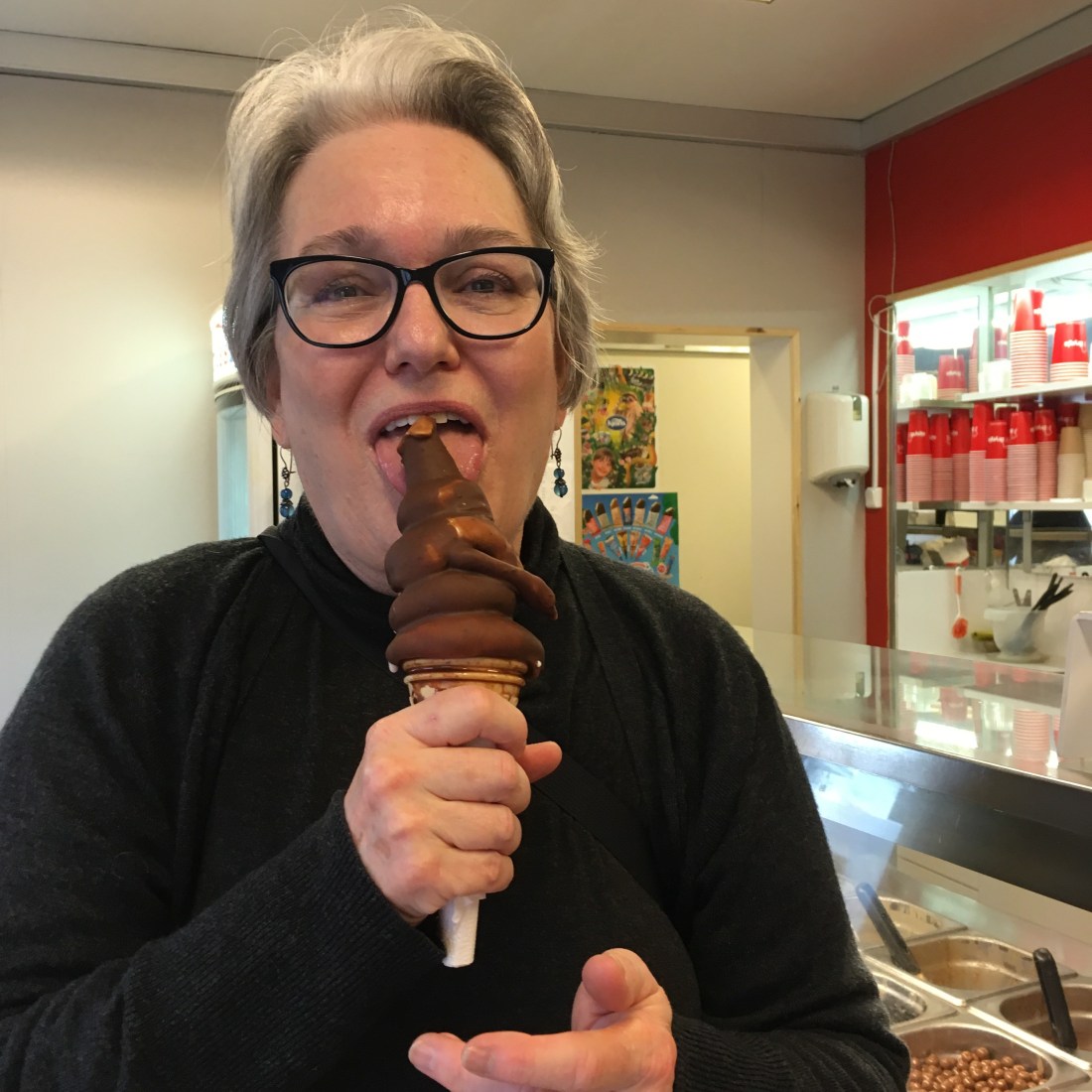 After a “small” dipped cone at the place reported to have the best ice cream in Iceland, my friend and I were off on a road trip to what we called the top of the world–scenic driving and stopping along Tröllaskagi.