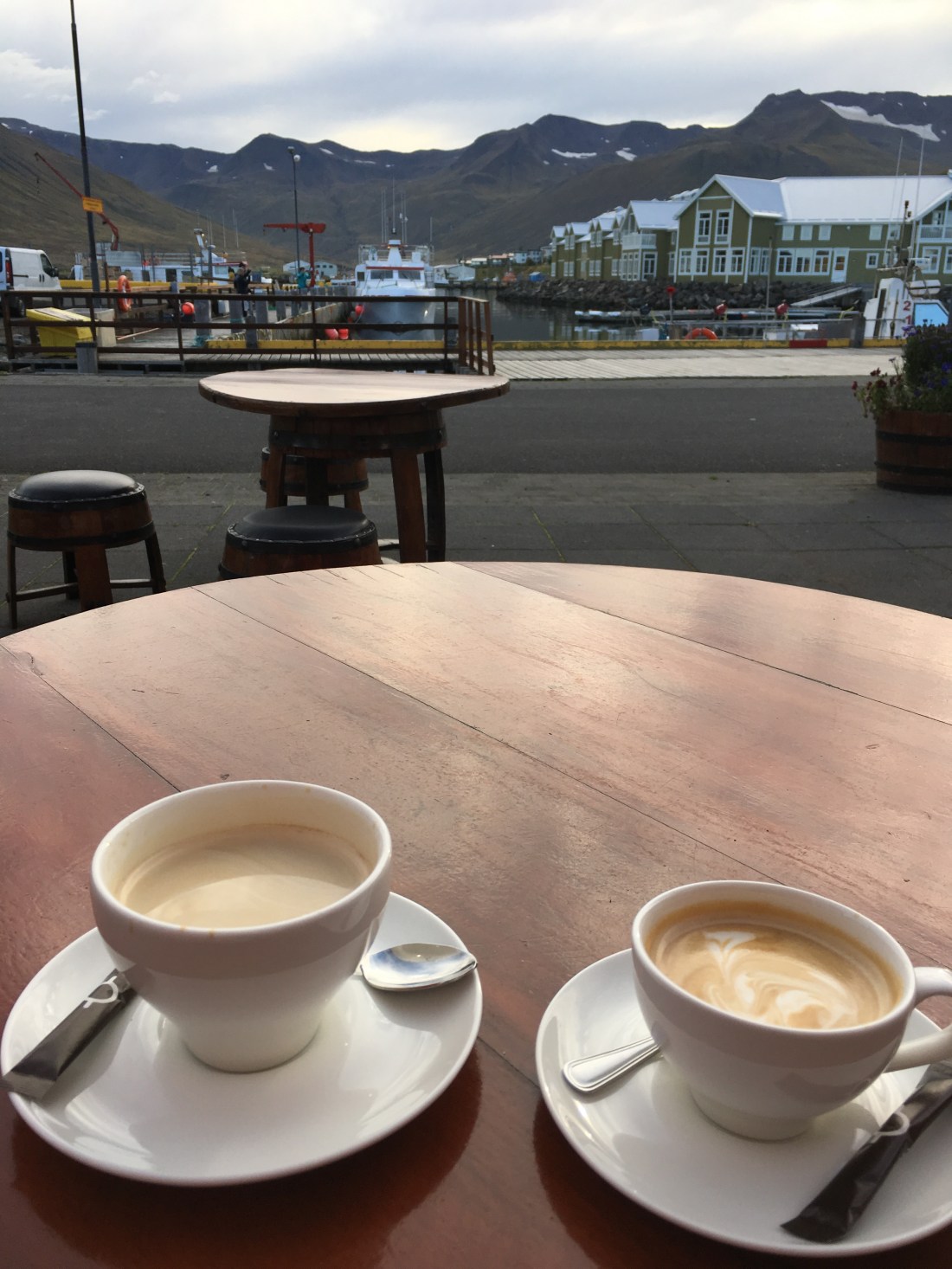 The day included poking in and out of churches, breath-taking vistas, endless pastures polka-dotted with sheep of a variety of colors, a picnic overlooking the fjord, yarn shopping in the grocery store, and cappuccinos sipped outside overlooking a harbor.