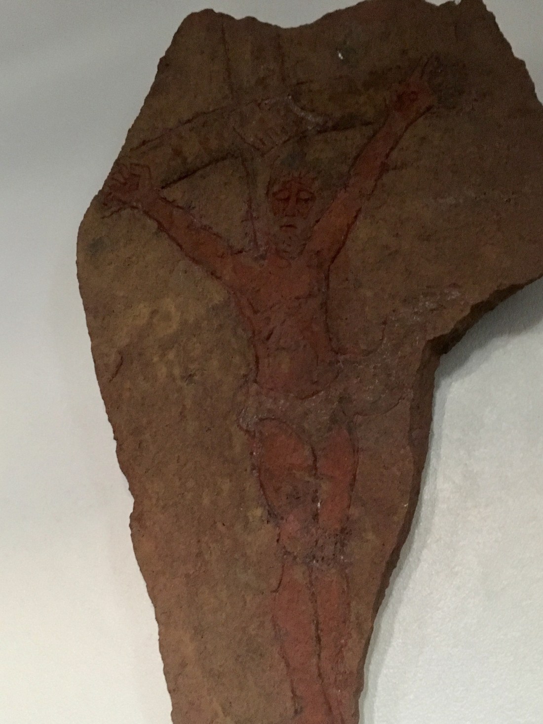 As we drove back to our hotel, we spotted a lovely church just off the road. It was in the midst of an installation by a local artist whose sculptures are worked in the local rock.