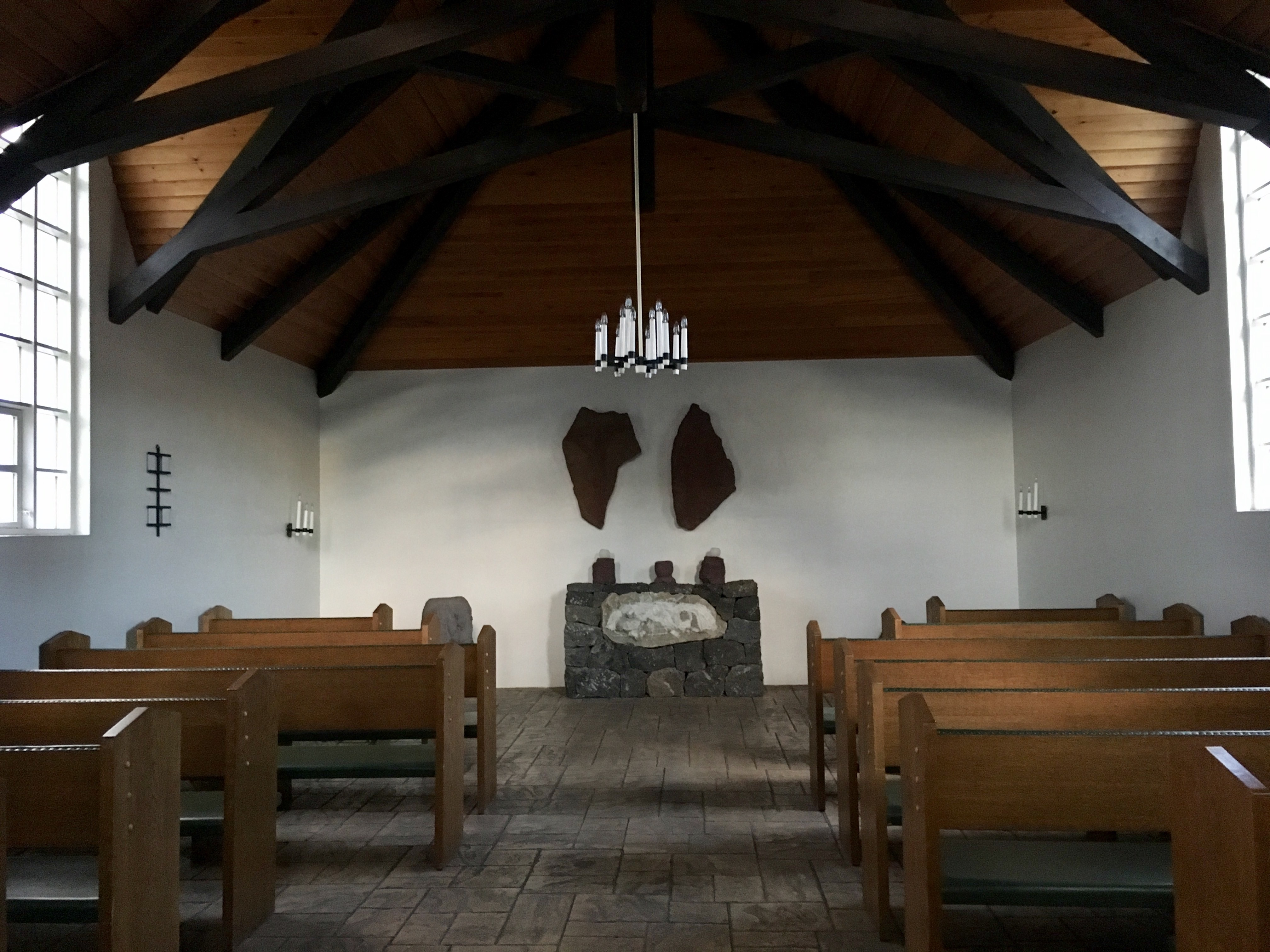 Over the altar were two sculptures–one of a crucified Jesus and the other of a resurrected Christ.