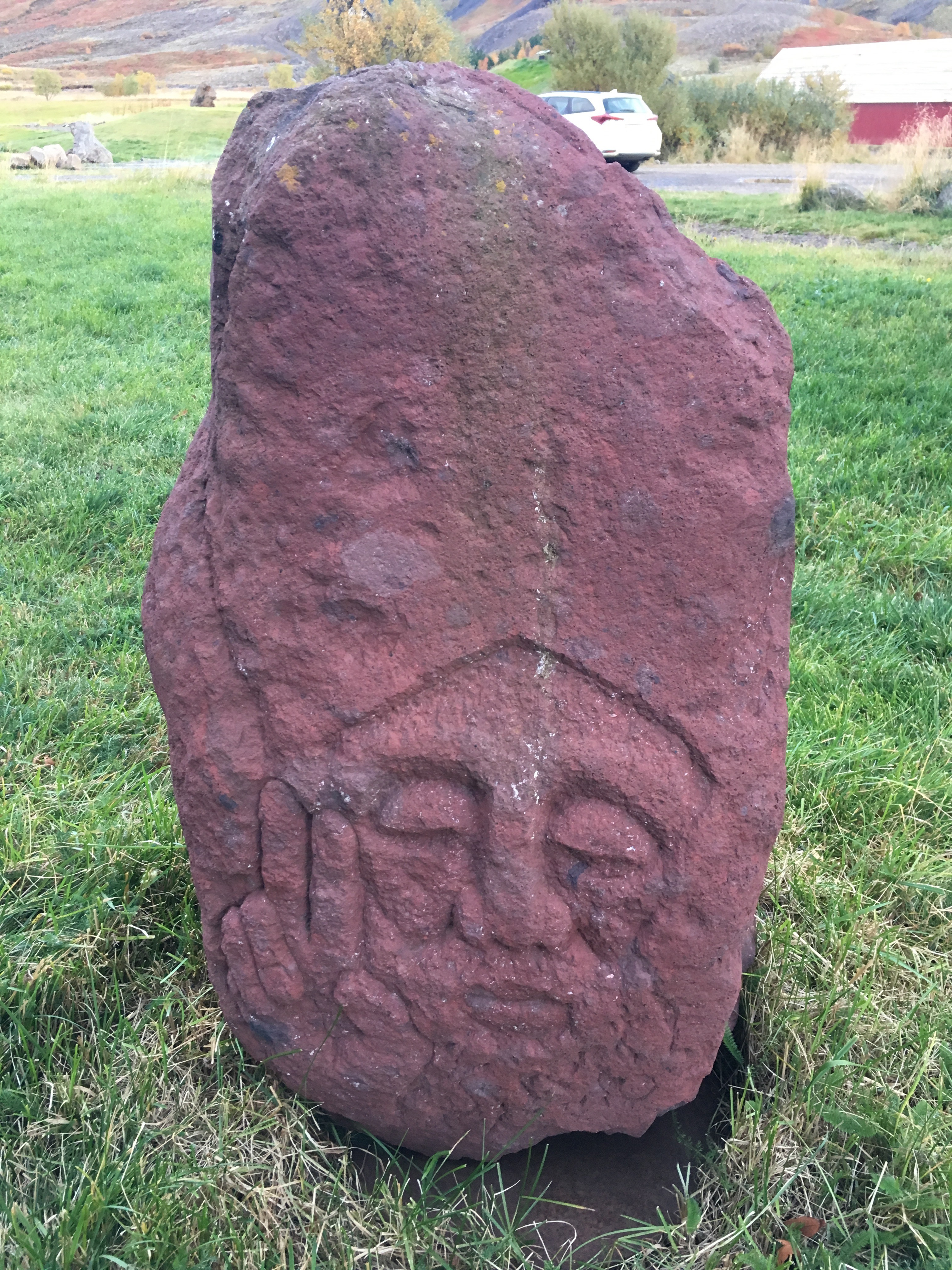 As we drove back to our hotel, we spotted a lovely church just off the road. It was in the midst of an installation by a local artist whose sculptures are worked in the local rock.