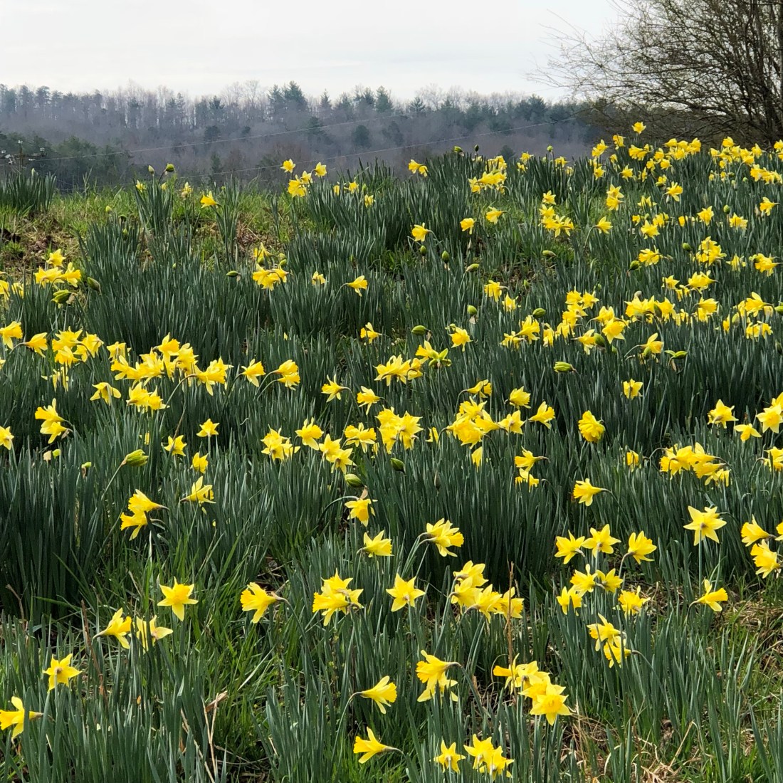 Yesterday I travelled out in the Georgia countryside to see a field of daffodils that a woman at church had told us about. Sloping down from an abandoned home was a hillside awash with yellow.