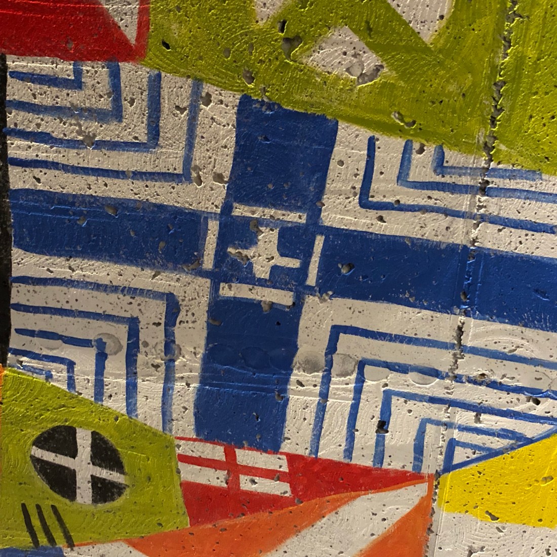 The wall of the hotel is covered in a mural of crosses. Seeing them this morning, the blue ones seemed to praise Mary.