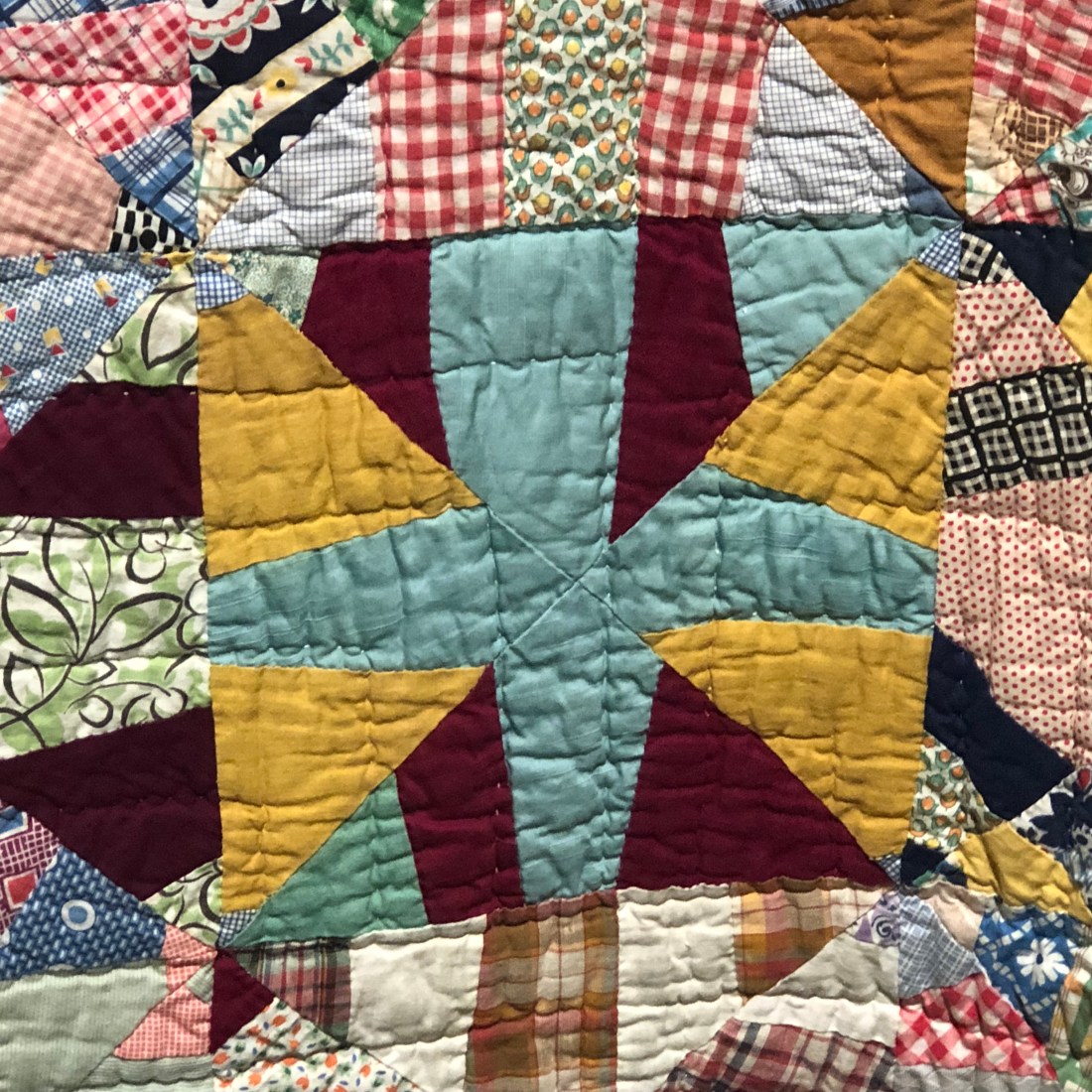 Although the quilt tops were made by individuals, they were finished by groups of women who quilted them in community, continuing their story telling as they completed the quilt.