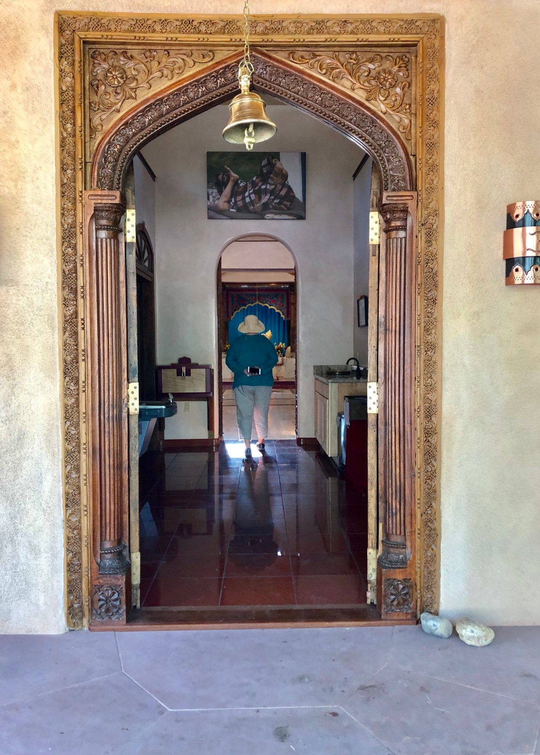 As we left, a man was entering to pray. He removed his shoes, rang a bell hanging above the entrance, knelt to touch the threshold, and then reached to touch the transom.