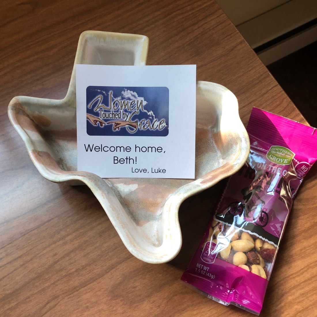 Sister Mary Luke always leaves a note in my room and some Texas memorabilia she has found on one of her thrift shop jaunts.