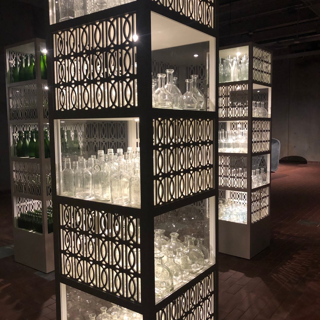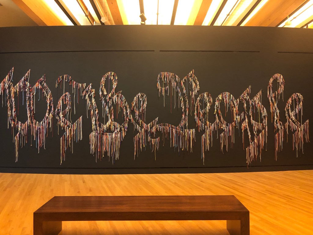One of the reasons we wanted to start the day at The Momentary was to see Edra Soto’s installation. On her walks around her Chicago neighborhood, Edra noticed a plethora of empty liquor bottles scattered literally with abandon. She began to gather the bottles, clean them, and create art with them.