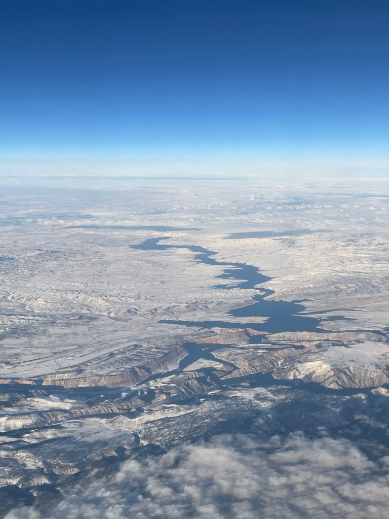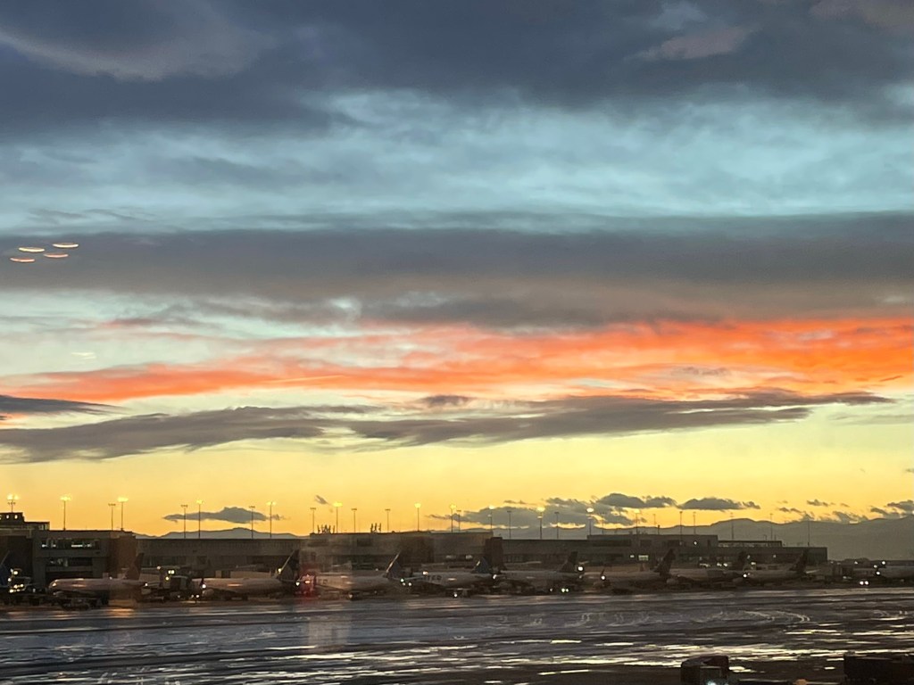 On my way back to Houston. I watched snow on the ground from the window of my plane as the light faded.