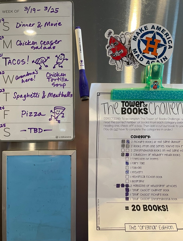 Lego building, karate, reading books. The years of story time are past, yet we settle together with our own current chapter books.