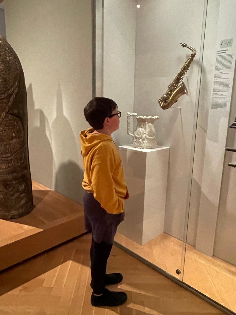 We stopped for lunch in the cafeteria, then we were off again. The Middle Ages, Vermeer paintings and Cassett prints (for me) and the music room (for Austin). The European painting rooms were closed so we have a reason to come back.