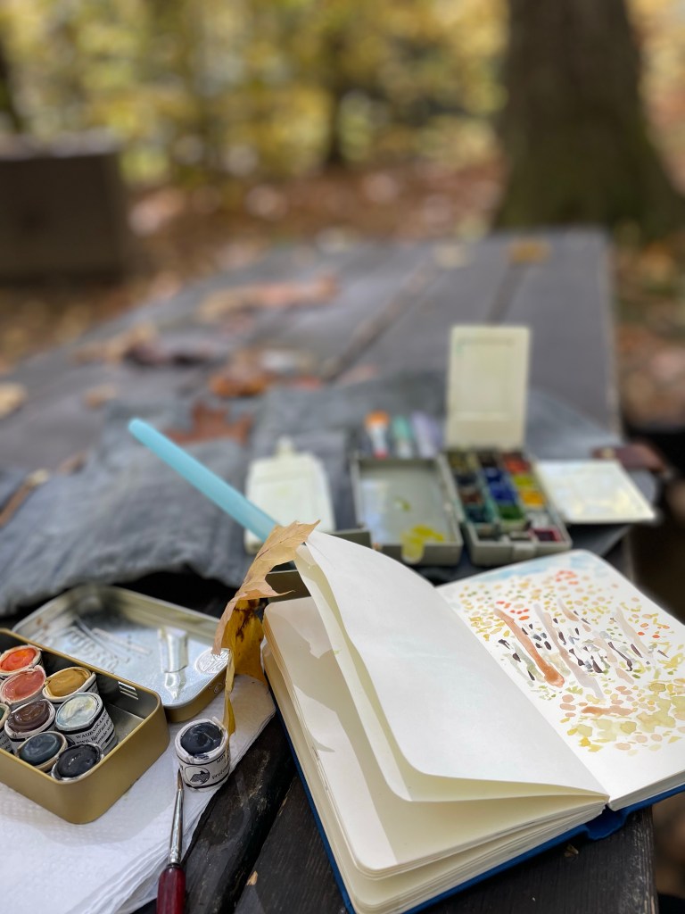 A walk in Pittsfield State Park that included time to stop and paint as the leaves dropped around me.