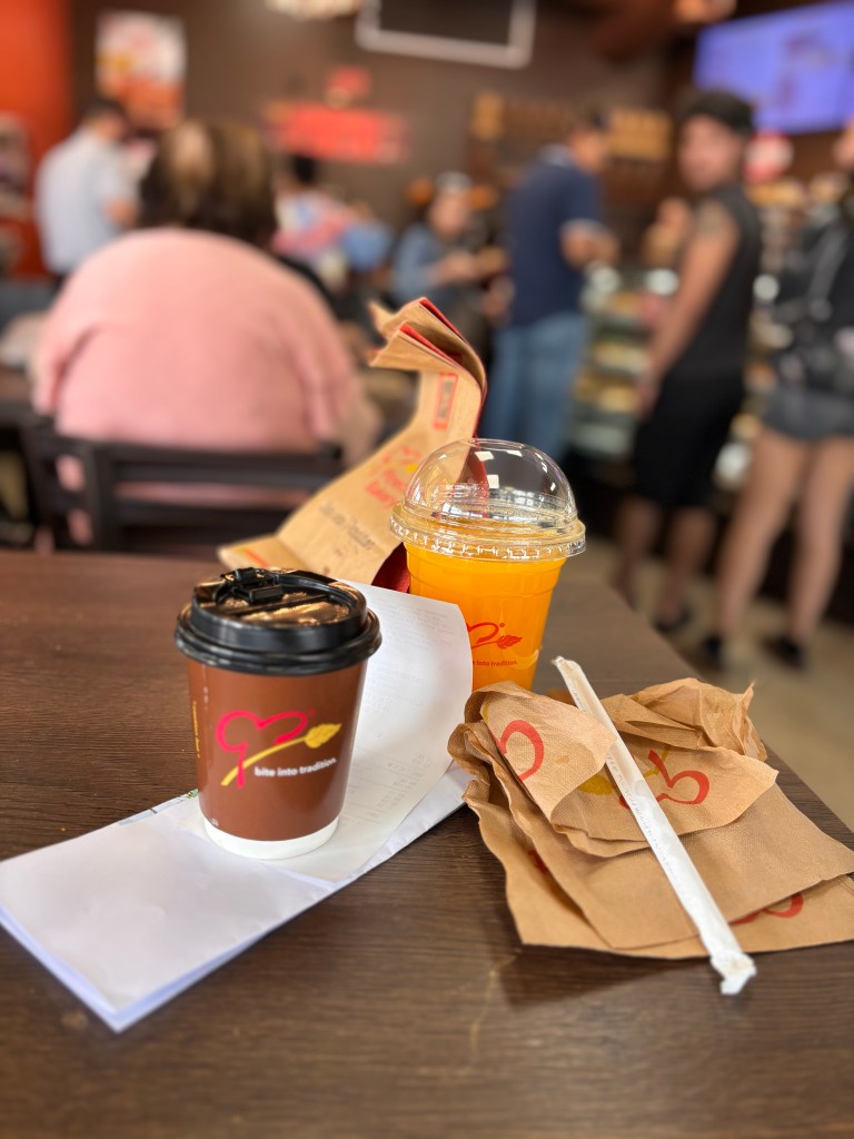 Because first there was a stop for coffee and breakfast.
