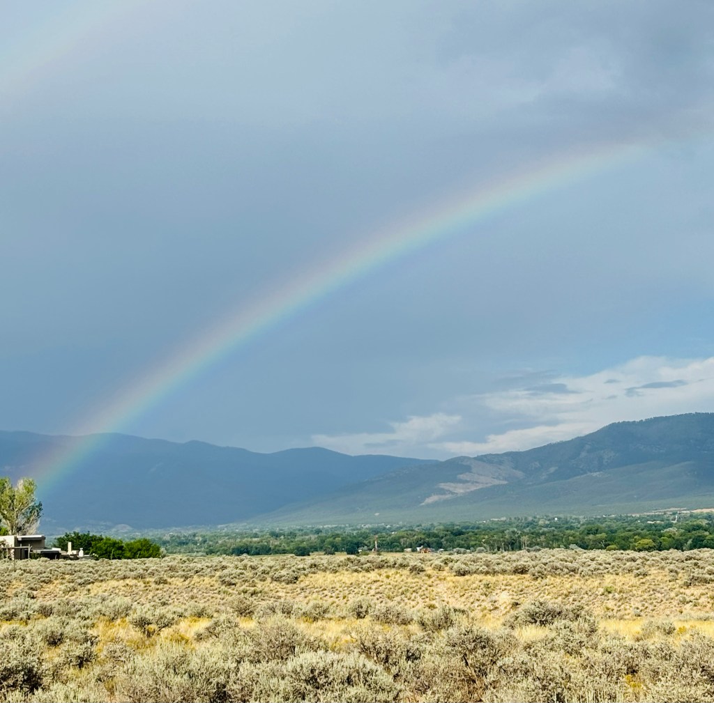 The yellow of trees and rainbows outside the window on the High Road drive from Chimayo to Taos.