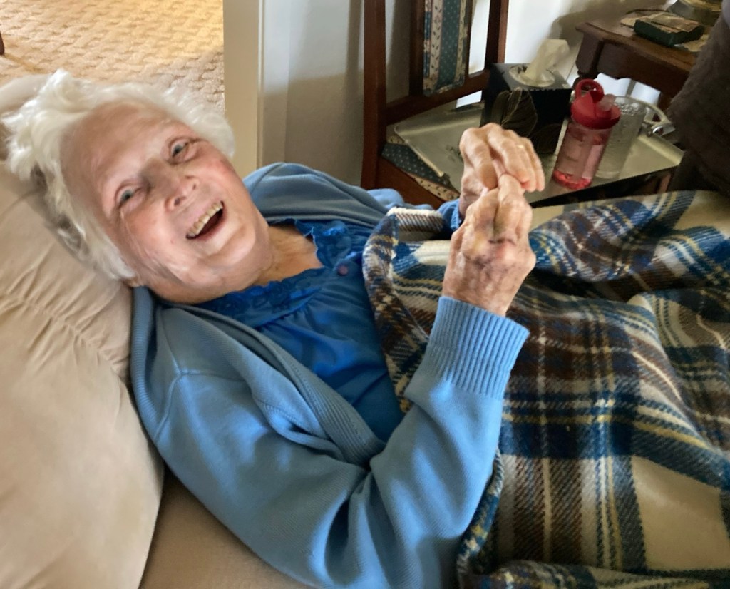 Good Friday. My daughter coming to be with her Grandma, reading aloud all of the kind words people had written in response to her blog, Grandma’s Chocolate Pie.