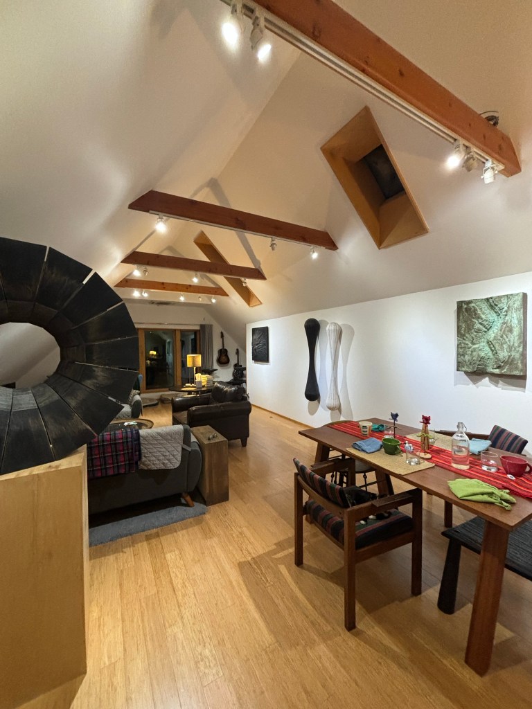 Tuesday evening my best friend and I made a jaunt outside of Taos to our friends Abby’s and Dean’s house for dinner. They are both gifted artists, and visiting their home is like being in an art gallery.
