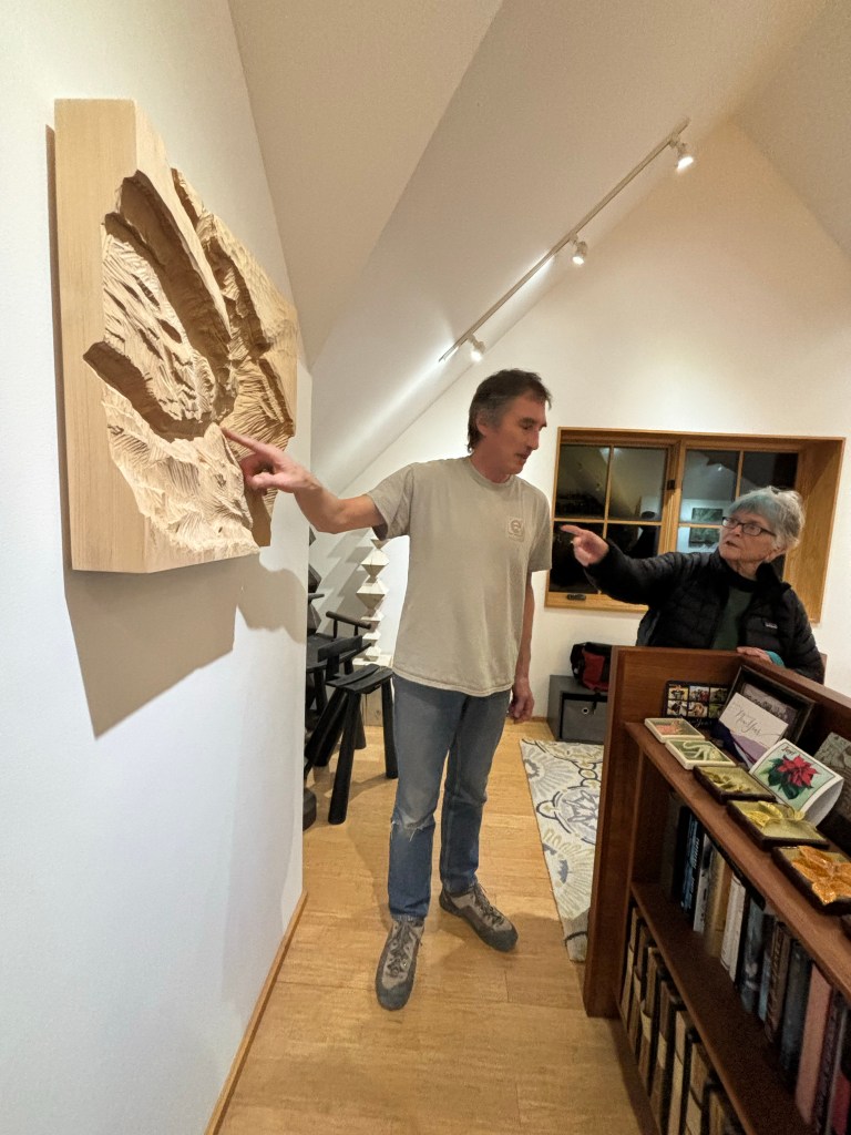 Dean creates mainly in wood, and his latest work is sculpting landscapes. We had a deep conversation about his creation process which includes walking the terrain and deep contemplation of space. As God would have it, one of his latest works was inspired by the jaunt we planned to drive the next day.