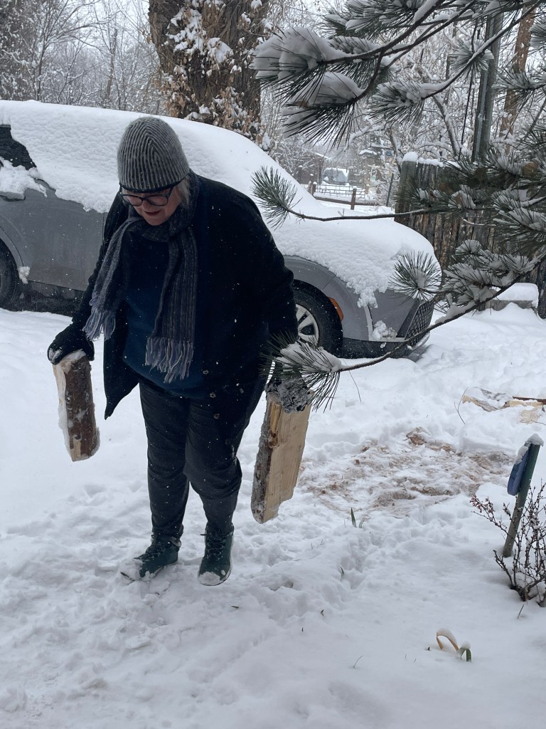 The huge snow storm on Thursday limited the jaunting to the wood pile for more wood for the fire.